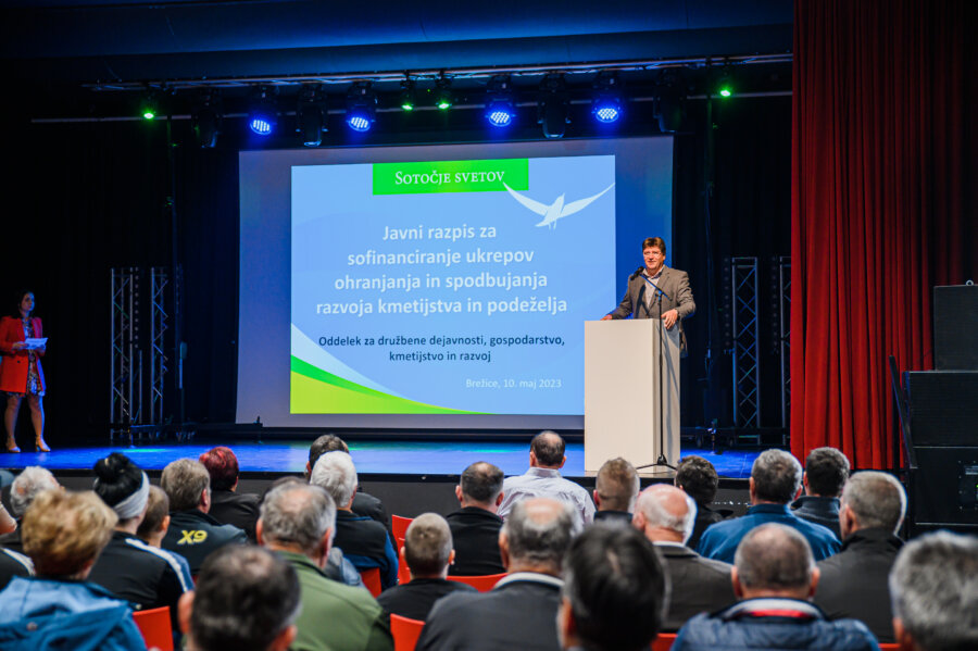 Brežice – V večnamenski dvorani Mladinskega centra Brežice so se 10. maja zbrali kmetovalci na javni predstavitvi izbranih razvojnih programov kmetij oz. naložb v primarno kmetijsko proizvodnjo, ki jih bo Občina Brežice letos sofinancirala na podlagi javnega razpisa za ohranjanje in spodbujanje razvoja kmetijstva in podeželja v občini. Občina preko javnega razpisa zagotavlja 150.000 evrov za sofinanciranje investicij v posodobitev objektov in opreme, povprečen delež sofinanciranja znaša dobrih 23 % upravičenih stroškov investicije, kar je najvišji delež v zadnjih desetih letih. Poleg javnih razpisov za tehnično podporo društvom, turistično promocijo vinorodnih okolišev in sofinanciranje lovskih domov občina letos na področju kmetijstva namenja tudi 350.000 evrov za tehnološko posodobitev namakalnega sistema Arnovo selo (I. faza) ter izvaja projekt za ohranitev avtohtone sorte pišeška marelica.