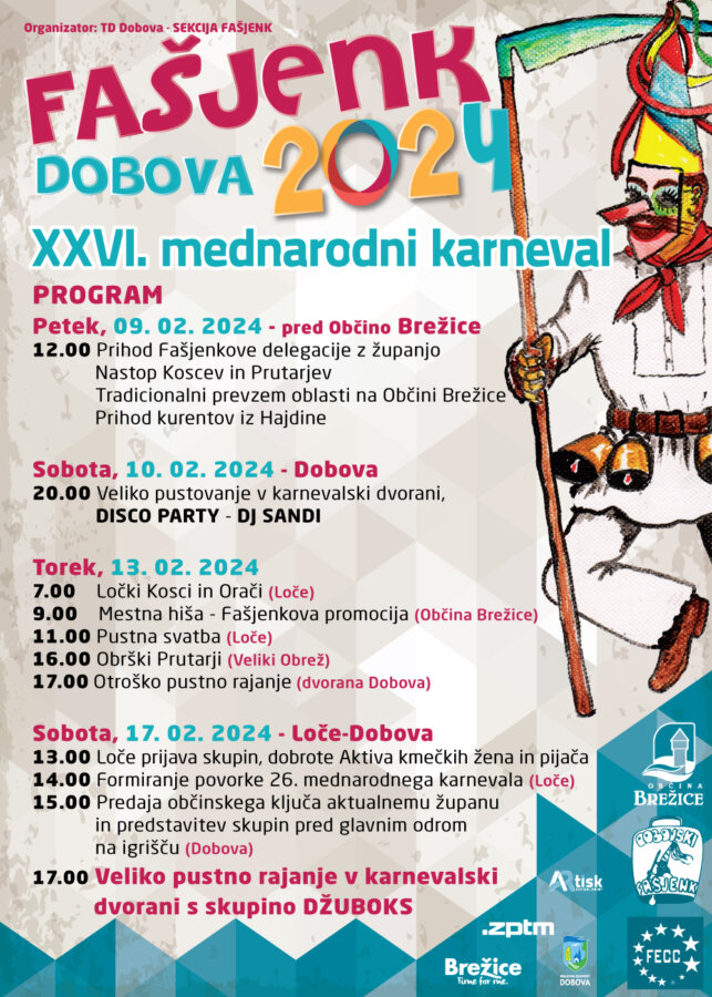 Prireditve Turističnega društva Dobova, sekcija Fašjenk Dobova, za februar 2024: