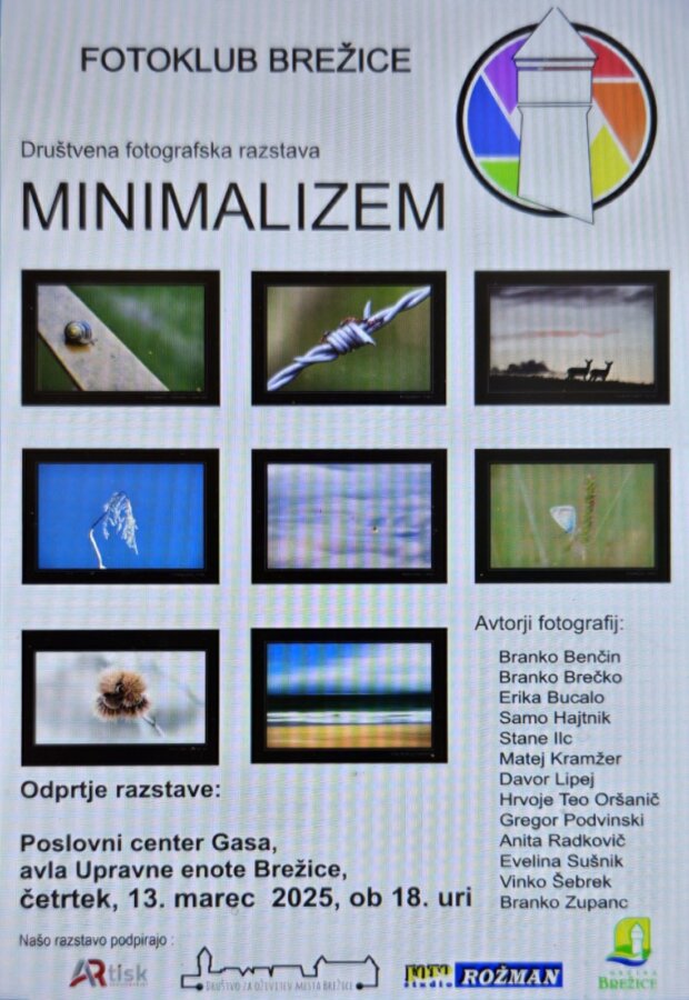 Fotoklub Brežice z veseljem vabi vse ljubitelje fotografije na društveno fotografsko razstavo z naslovom Minimalizem. Razstava, ki je posvečena estetiki preprostosti in subtilnosti, prinaša impresivno zbirko minimalističnih fotografij, ki odražajo edinstvene perspektive ustvarjalcev.