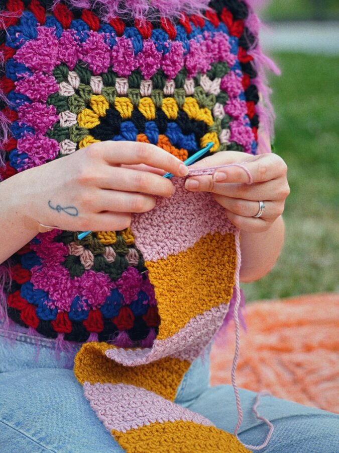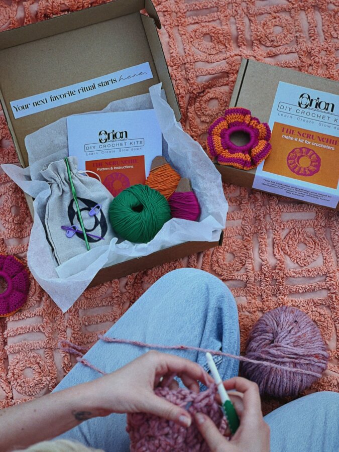 “Želela sem ustvariti nekaj, kar bi spodbudilo ljudi, da znova najdejo stik s svojimi rokami in časom,” pove Adrijana. Njeni kompleti omogočajo izdelavo gumice za lase, šala ali otroške odejice — vsega dovolj preprostega, da se ga lahko loti tudi popoln začetnik.