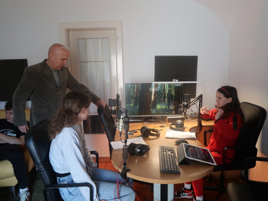 V studiu Radia Brežice EU je bilo v četrtek, 12. marca, spet živahno. Gostili smo ekipo Osnovne šole Maksa Pleteršnika Pišece, ki se je pravkar vrnila z nepozabne Erasmus+ izmenjave na Portugalskem. Voditeljici Ema Baškovič in Izabela Štrucl Ogorevc sta v sproščenem pogovoru gostili učenca 9. razreda, Nika Skrivalnika in Ožbeja Matijevca, ter učiteljico geografije Sanjo Štefanič.
