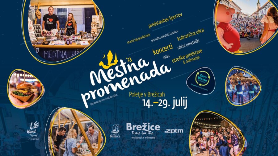 Med vrhuncem turistične sezone, kar je tudi naš cilj, se bo v mestu veliko dogajalo. V času med 14. in 29. julijem bomo organizirali največji poletni projekt – »Mestno promenado« po vzoru lanskoletnih, razširjenih programskih vsebin. Na odru se bodo tako v enajstih dneh zvrstili koncerti domačih in tujih glasbenih skupin, stand up predstave, salsa na ulici, otroške predstave in glasbene delavnice, kulinarična ulica in stojnice z rokodelci. Otroški program bodo letos dopolnile tudi pestre športne delavnice. Kot je povedala vodja centra za podjetništvo in turizem Anja Avšič: »je nujno, da je ZPTM, kot organizator prireditev, zgled ostalim organizatorjem v občini, zato smo letos skupaj z Ekologi brez meja, pristopili na pot do pridobitve naziva »zero waste« prireditve za Mestno promenado.« Cilj, ki ga moramo v Brežicah doseči je na celotni prireditvi zbrati vsaj 90 % ločenih odpadkov, »kar je za tako obsežno prireditev kar velik organizacijski zalogaj«, je dodala Ana Golja, vodje zero waste turizma pri Ekologih brez meja.