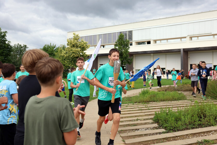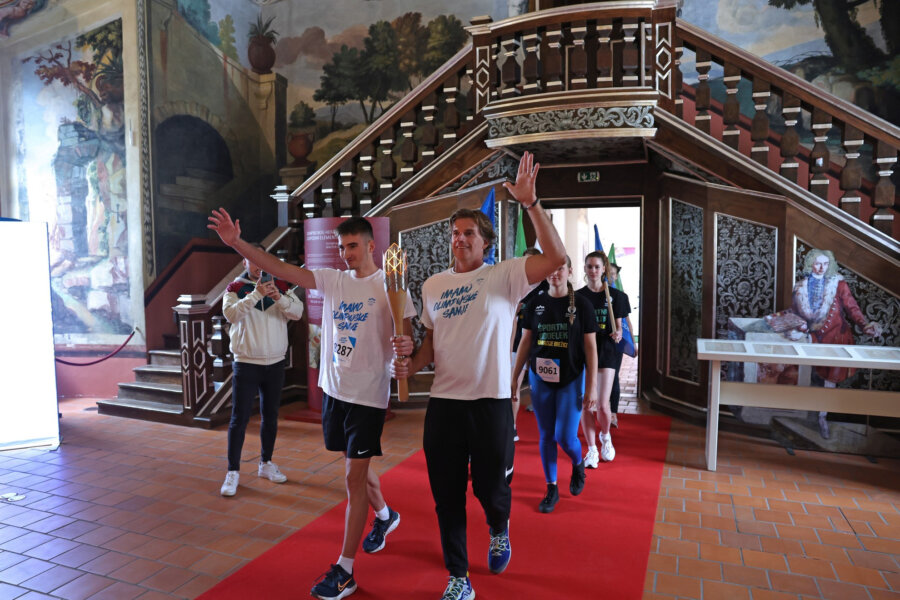 Po obisku veličastne viteške dvorane so jo člani različnih lokalnih športnih društev in osnovnih ter srednjih šol ponesli mimo vodovodnega stolpa na prenovljeni atletski stadion Brežice, kjer je potekala osrednja prireditev. Plamenico je na stadion prinesla atletinja Leja Glojnarič (Parašportnica leta 2023 in dvakratna olimpijska prvakinja na Olimpijadi gluhih), nato je krog s Slovensko baklo opravil tudi župan Ivan Molan, pa predstavniki različnih klubov, društev, šol in organizacij. Zadnji krog je pripadel Niki Glojnarič, ki se bori za nastop na OI v Parizu.