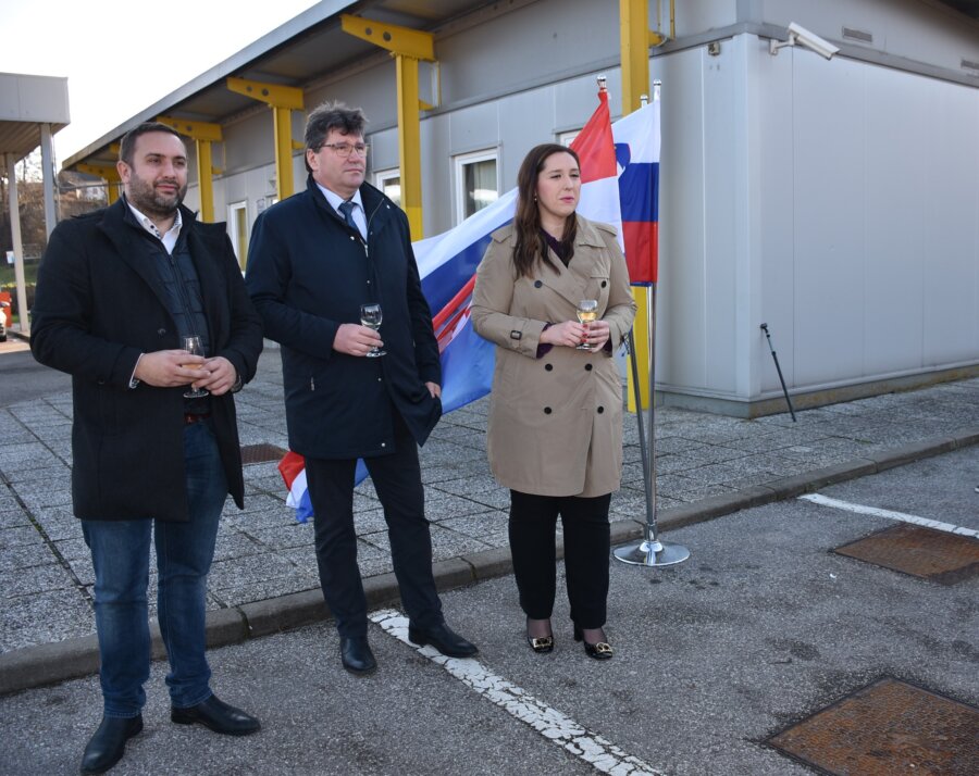 Županja Petra Škrobot je vsem udeležencem zaželela srečno novo leto. »Danes je velik dan za Hrvaško in zelo pomemben dan predvsem za prebivalce ob meji, saj bo z današnjim dnem njihovo vsakodnevno življenje lažje, še posebej za tiste, ki mejo dnevno prehajajo zaradi npr. dela. Vesela sem, da smo ta dogodek obeležili skupaj, saj so odnosi med sosednjimi občinami že sedaj res dobri. Tu so vsakoletna čezmejna srečanja pri Kalinu, v naših šolah se uvajal slovenščina kot izbirni predmet. Verjamem, da bomo v prihodnje naše sodelovanje še poglobili.«