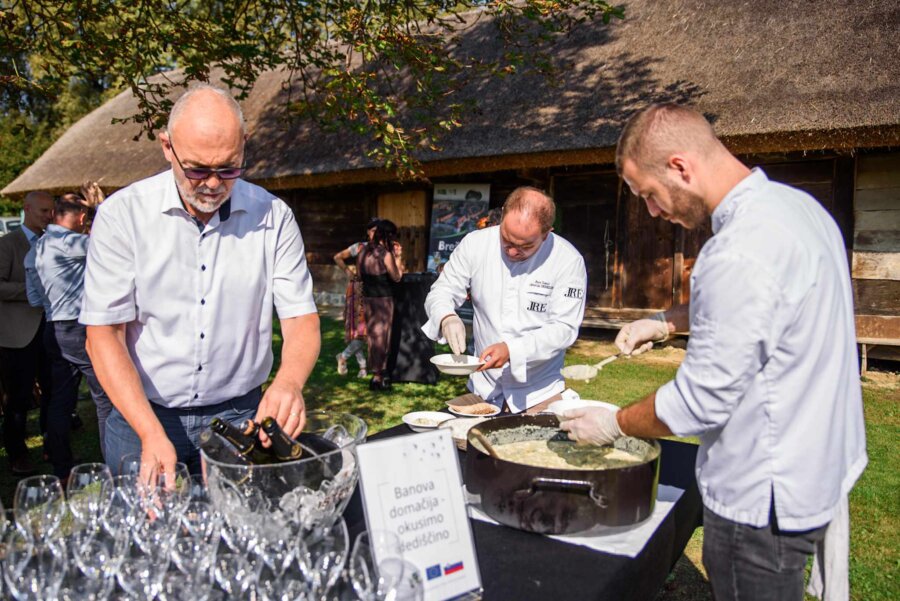 Pogostitev sta tokrat pripravila ambasadorja destinacije Jure Tomič iz Ošterije Debeluh in Miha Istenič iz Vinske kleti Istenič.