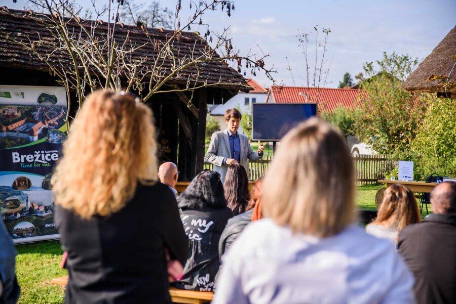 Uvodoma je Nejc Pozvek s Fakultete za turizem UM razgrnil izhodišča nove Strategije razvoja turizma v Brežicah in hkrati poudaril pomen medsebojnega povezovanja. Sledila je novinarska konferenca, v katero je uvod naredila Katja Čanžar, direktorica ZPTM Brežice, in izpostavila ključno sporočilo novinarske konference: »Vodilni področji dela ZPTM v letu 2023 sovpadata tako z nacionalnimi in mednarodnimi strateškimi usmeritvami kot z vodili platinaste destinacije; to sta utrjevanje trajnostnih rešitev v turistični industriji in vzpostavitev kolektivne blagovne znamke Brežice Izbrano. V slednjo se je vključilo že 26 ponudnikov s kar 124 izdelki. Seveda pa se je s podelitvijo certifikatov pravo delo šele začelo. Zelo pomembno bo zagotavljanje določenih količin, predvsem pa vključenost certificiranih izdelkov in pridelkov v različne vrste ponudbe, zlasti še na področjih gostinstva in turizma. Naj še pohvalim trajnostne rešitve v destinaciji – Zeleni ključ kot vodilni standard odličnosti na področju okoljske odgovornosti in trajnostnega delovanja v turistični industriji ima na današnji dan že 14 ponudnikov v občini Brežice.