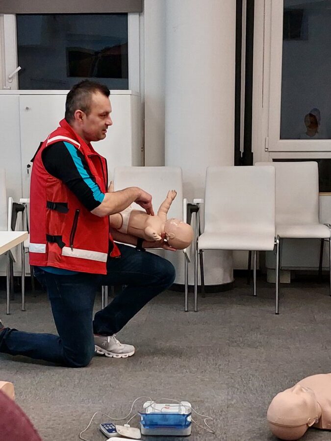 15. 2. 2023 so v sodelovanju z Območnim združenjem Rdečega križa Brežice izvedli delavnico z naslovom Prva pomoč pri otrocih. Na delavnici so udeleženci obnovili znanje o opremi prve pomoči. Seznanili so se kako pomagati otrokom pri zadušitvah, zaustavljanju krvavitev, zlomih, odrgninah, kako se premika poškodovanca, … Znanje, ki so ga udeleženci pridobili ali obnovili, rešuje življenja.